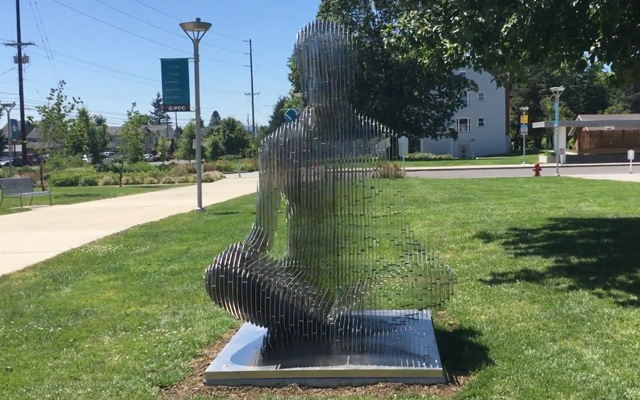 All this sounds very enigmatic but we understand better what he means when we see his works. His anamorphic sculptures disappear when you change your angle of view. They consist of lots of metal plates all connected in a perfectly parallel way and with an identical space between each one. Thus, when we find ourselves in front of the statue, we see only the very thin slices of the iron plates and the structure becomes practically invisible.